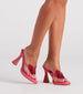 You'll be the ultimate glam girl with these totally trendy stiletto heels! They feature an open round toe. a thin thong strap design with a cute butterfly accent with sparkling rhinestone embellishments. an open back for easy on-and-off styling. and an hourglass stiletto heel. The faux leather material has a subtle cushioned insole. Style with a mini handbag.