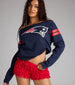 Cozy with a bold twist—this off-the-shoulder New England Patriots pull-over top keeps your team spirit front and center while serving up effortless game day glam.
