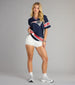 • Sequin-embellished New England Patriots front graphic and back text graphic