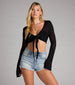 Under The Sun Long Sleeve Tie-Front Crop Top