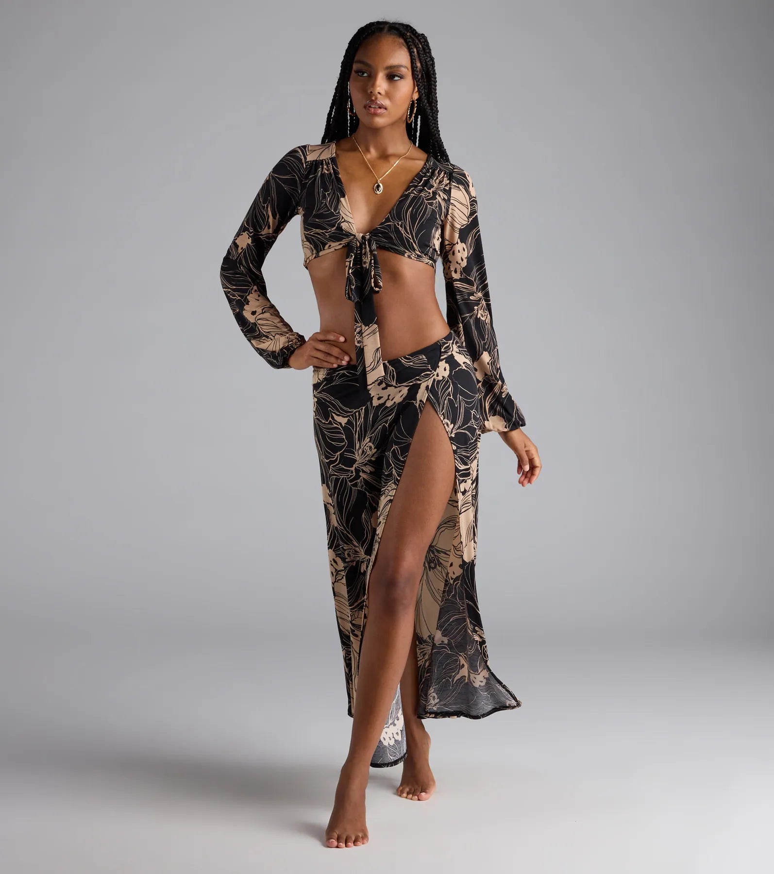 Perfect for any vacation or resort escape. this tropical maxi skirt boasts a sultry high front slit and a flowy silhouette for a breezy allure. Pair with the matching top.
