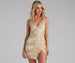 Make your night one to remember in a dress that stuns from head to toe! The mini dress features a gorgeous floral lace design. a sleeveless V-neckline with padded cups. adjustable spaghetti straps. and padded cups. The high waist leads to a short-length hem with a mini side slit. The short dress is composed of a lined mesh fabric that offers a form hugging fit with minimal stretch. Complete look with chrome heels and a moto jacket.