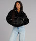 All the warmth. none of the bulk—this oversized faux leather puffer gives your winter look that effortless “don't worry. I've got it handled” vibe. The glossy finish and hood bring street-style edge. while the cozy fill keeps you warm from coffee runs to late-night plans.