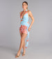Sun-kissed and ready to steal the scene. this floral mesh mini dress brings that radiant. vacation-glow confidence. The soft bodycon fit hugs just right. with a halter plunge neckline and a draped sash that make your arrival feel effortlessly iconic.