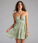 This breezy mini dress will inspire you to book a vacay somewhere sunny with an ocean view! With a flattering halter neckline and playful ruffled skater silhouette. this dress is perfect for any getaway.