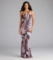You'll be on vacay mode in this sultry tropical print maxi dress featuring a one-shoulder neckline with a chic O-ring accent and an alluring bust cutout. The floor-length fitted silhouette will flaunt your stunning curves.