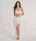 Heading on vacation? Don't forget to grab this vacay ready high-rise crochet maxi skirt with a sultry high front slit that flaunts some leg. Pair with the matching top and your fave shades!