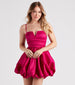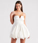 Sweet and flirty. the Valerie party dress is a must-have for Homecoming season! She features a sleeveless sweetheart neckline with a notched front design and a fold-over hem. a padded bust that eliminates the need for a bra. and adjustable spaghetti straps for a customized fit. Her pleated high waist leads to a short party skirt with a cute bubble hem and a fit-and-flare silhouette. Complete your look with sparkly rhinestone heels.