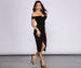 Keep it classically chic in our elegant Vanessa midi dress! Her off the shoulder neckline is perfect for pairing with a statement necklace and midi length showcases glowing gams!