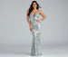 Shine like the prom queen you are with a prom dress that was made to stand in the spotlight! Vee features a sleeveless wired V-neckline. padded cups to go braless. and adjustable spaghetti straps that create a customized fit. She stands out with a damask sequin pattern throughout. Her slim-fit waist leads to a flared mermaid silhouette that creates a dramatic entrance. Vee is composed of a fully lined mesh fabric that offers a form hugging fit with minimal stretch. Complete your prom outfit with heels and a sphere clutch.