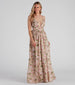 Fresh. floral. and ready for your spring formal! The Veronica chiffon a-line dress is all romance in her effortless. sleeveless bodice with delicate details everyone will be swooning for. She features a plunge v-neckline with pleating and adjustable spaghetti straps that cross in the back on the open design. Her a-line silhouette flows into a floor-length hem to elongate your figure while creating an hourglass appearance. The formal dress is composed of an airy chiffon overlay with an inner knit lining. Complete the look in an elegant hairpiece for a stunning updo.
