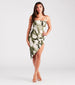 This abstract print midi dress was made for your next getaway! It features a sleeveless square neck. spaghetti straps. a bodycon silhouette. side ruched seams. and a flirty asymmetrical side slit along the hem. Complete the look in cute sandals.