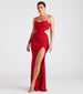 Arrive at the event ready to celebrate in the Victoria formal dress designed on a glitter knit that glistens from every angle! She features a sleeveless. cowl neckline. spaghetti straps. a fitted bodice. and an open-back design. Flaunt your curves along her form-hugging. mermaid silhouette showcasing a sultry high-cut slit and a floor-length hem. The formal dress is composed of a stretch-knit fabric with a lining. Complete your dressy look with a clutch and heels.