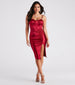 You'll be looking like a vision in this satin midi dress to make a flawless entrance at the club! Featuring a sleeveless sweetheart neckline. adjustable spaghetti straps. padded bust. flexible boning bodice. a bodycon silhouette. and a front ruched seam leading to the skin-flaunting slit. The mid-length dress is composed of a lined silky satin fabric with a slight stretch. Complete the look with an envelope clutch.