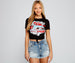 Hey. high roller! Stun with a graphic tee that is part vintage. edgy! The graphic tee features a crew neckline. short sleeves. a graphic that reads: "Las Vegas Trip". an image of a vintage car. and a cropped hem. The tee is composed of a cotton knit fabric that offers a relaxed fit with a moderate stretch. Complete look with high waist shorts and sneakers.Â