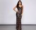 Spiraling patterns with sparkling glitter embellishments wrap around our form-hugging Vivica. A plunging V neckline showcases a barely-there mesh inset for subtle coverage. Go for a glamorous vibe by accessorizing her with a rhinestone clutch and earrings!
