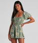 Flirty and floral. this puff sleeve romper is perfect for soaking up the sun! It features short sleeves. a square neck. and a smocked bodice atop flowy shorts. Complete the look in trendy sandals for a day out.Â