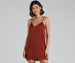 Keep it chic this weekend in this satin slip dress for a classy night out! It features a sleeveless V-neckline. adjustable spaghetti straps. and a short-length hem. Complete the look in the matching tunic.