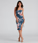 Pack this adorable floral printed midi dress in your carry-on for your next weekend getaway! It features a sleeveless square neckline. spaghetti straps. ruched detailing down one side leading to a slit. and a midi-length. curve-hugging fit. Style this dress with your fave oversized shades and espadrille wedges.