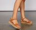Get totally weekend-ready with these on-trend platform sandals! They feature an open round toe. a toe strap. an adjustable ankle strap. and a stacked platform. Style the sandals with a floral dress.