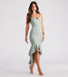 Elevate your style with this well-refined crepe midi dress perfect for wedding showers or dressy parties! It features a sleeveless V-neck. spaghetti straps that cross in the back. a form-fitting silhouette. and a flirty ruffled high-low hem. Complete the look in sassy mules and a clutch.