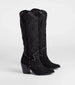 Bring some western edge to your going-out looks with these trendy cowboy boots. Featuring a below-the-knee height. the sleek studded western design will level up your 'fits.