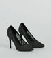 Catch these rhinestone fishnet pumps in your net! They feature a pointed toe for added allure. a stiletto heel for sky-high elegance. and a closed design for a secure fit. Complete the look with a trendy handbag for any occasion!