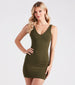 What a girl wants is this casual mini dress perfect for styling up or down! The dress features a sleeveless V-neckline. wide shoulder straps. and a bodycon silhouette on stretchy rib knit fabric. Complete the look in stunning lace-up heels for a party.