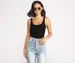 Bring a scoop of style in a fab bodysuit to style with all your effortlessly casual outfits. The bodysuit features a scoop neckline with a matching scoop back. tank-like straps. and is composed of a ribbed compression knit fabric. Style the basic tank bodysuit with high waist denim and statement sunglasses.