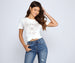 Show off your wild side with a tee that says it all! The top features a crew neckline. a graphic that reads: "Wild At Heart. Rockstar". an image of a star with eagle wings. and short sleeves. Complete look with high waist jeans and combat boots.