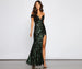 Chic and stunning. the Willow formal dress is perf for those special events where you want to make a grand entrance. She features an off-the-shoulder plunging wired V-neckline that is perfect for pairing with a statement necklace. short sleeves. a floor-length A-line silhouette with a form-hugging fit throughout. and a sultry thigh-high front slit. The lined mesh fabric has an intricate sequin scroll embroidered design for a luxe look. Complete the outfit with strappy heels.