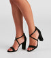 It's time to work it out in this pair of block heels! They feature a crisscross ankle strap. a block heel. and an open toe. Wear them with a jumpsuit and clutch for a show-stopping look.