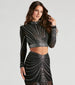 Gorgeous rhinestones wrap around your curves on this crop top featuring long sleeves with shoulder pads. a crew neck. and a cropped hem on sheer mesh fabric with partial lining. Complete the look with the matching maxi skirt for a dressy birthday dinner!Â
