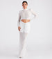 Gorgeous rhinestones wrap around your curves on this maxi skirt featuring a high-rise waist. and a form-hugging silhouette. and is composed of a sheer mesh fabric with a knit-lined skirt underneath. Complete the look with the matching crop top for a dressy birthday dinner!