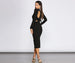 Look like a straight boss in a midi with all the right features! Our Yesenia features a crew neckline. long sleeves. and a midi length that hits over the knee. She as a cut out detail at the back and is composed of a crepe material that offers a form fit with slight stretch.