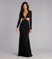 Designed for magnetic entrances. the Zoe formal dress combines sleek sophistication with bold allure. Crafted from smooth knit fabric. it features long sleeves. daring cutouts at the waist and back. and a gold ring accent that draws the eye to every curve. Made for the woman who owns her spotlight— effortlessly.