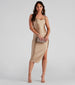 Look and feel like a total bombshell in the Zooey Formal Satin Lace-Up Midi dress that flaunts your curves on a form-fitting silhouette! She features a sleeveless. cowl neck. and dual spaghetti straps that lead to her sultry. lace-up design on her open back with a bum ruched seam to give you a peach appearance. Her slenderizing midi-length hem has a side ruched seam and slit accent perfect for flaunting some leg. Complete the look in stiletto mules and a sparkly clutch for prom!