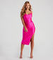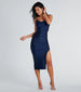 • Form-fitting silhouette. midi-length hem