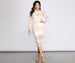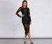 Grace them all with enchanting lace in our Zuri dress! She features a partially lined scalloped floral lace bodice with a high round neckline. unlined long sleeves. a sweetheart bust lining that leads to a mini length silhouette and a midi length with scalloped lace hem. Dress is composed of a scalloped lace and smooth knit fabric that offers a form hugging fit with a slight stretch. Includes a back zipper closure.