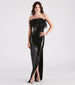 Flaunt your diva allure in the Zuri formal sequin dress to make a grand debut at school dances. sweet sixteens. or banquets! She features a strapless neckline with a statement feather bust. non-slip grip lining. and a flattering mermaid silhouette. high side slit. and floor-length hem. The formal dress is composed of a light-catching sequin embellished fabric with a stretchy knit lining. Complete the look in this long sequin dress with platform stiletto heels.